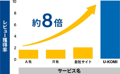 ログイン不要で簡単にレビュー投稿をすることができます。また、U-KOMIのメール配信アルゴリズムは最適の状況でメール配信を行うことができ、通常のサイトでの1~2%程度のレビュー獲得率を10%前後まで上げることが可能です。