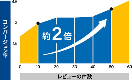 レビューの件数が増えるほどコンバージョン率はアップ!