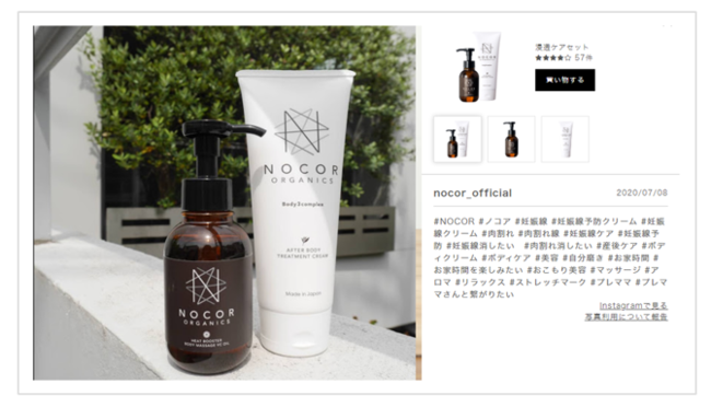 Instagramのコンテンツと商品データを紐づけた場合の表示例